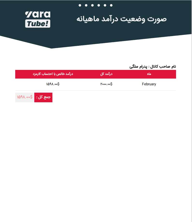 بعد از کلیک کردن روی گزینه گزارش pdf فایلی به شما نمایش داده می شود که گزارش درآمد ماهانه شما است