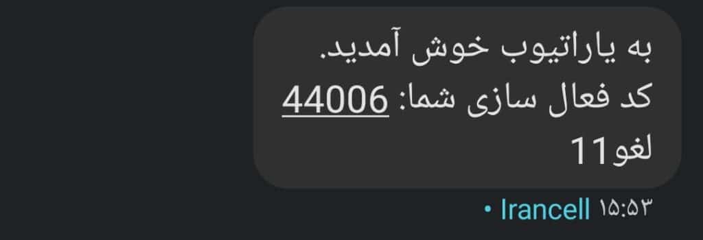 3.در این مرحله پیامکی از طرف یاراتیوب برای شما ارسال می گردد که در آن کد ورود به داشبورد شما قرار دارد.