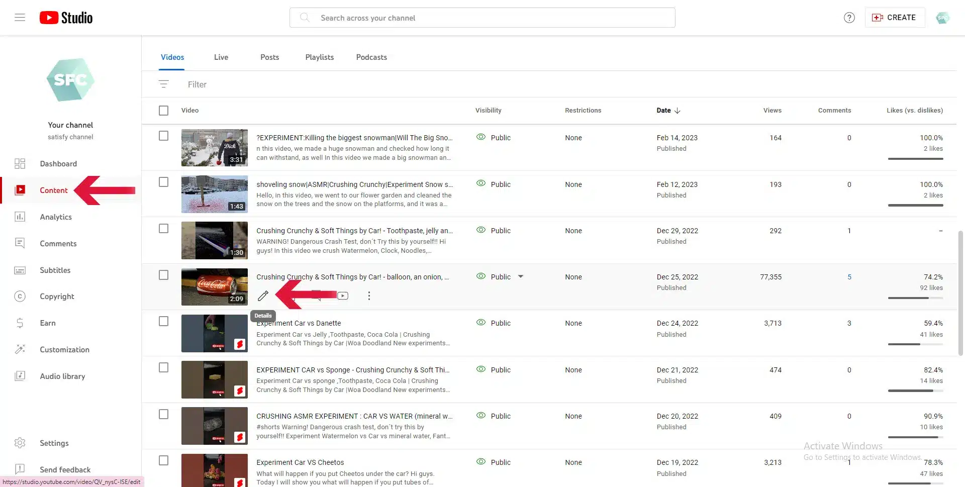 - در بخش محتوا (Content) لیست ویدیوهای خود را مشاهده خواهید کرد.