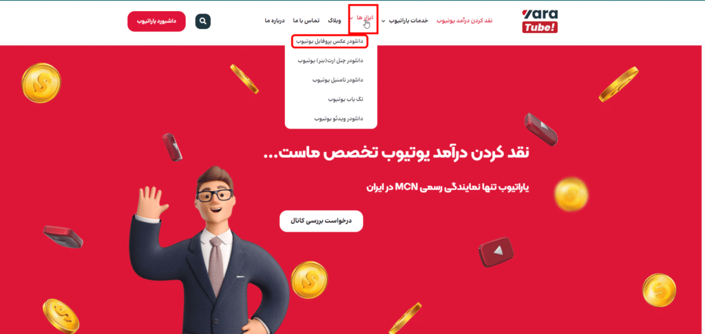و در این مرحله ابزار دانلودر عکس پروفایل یوتیوب را انتخاب نمایید