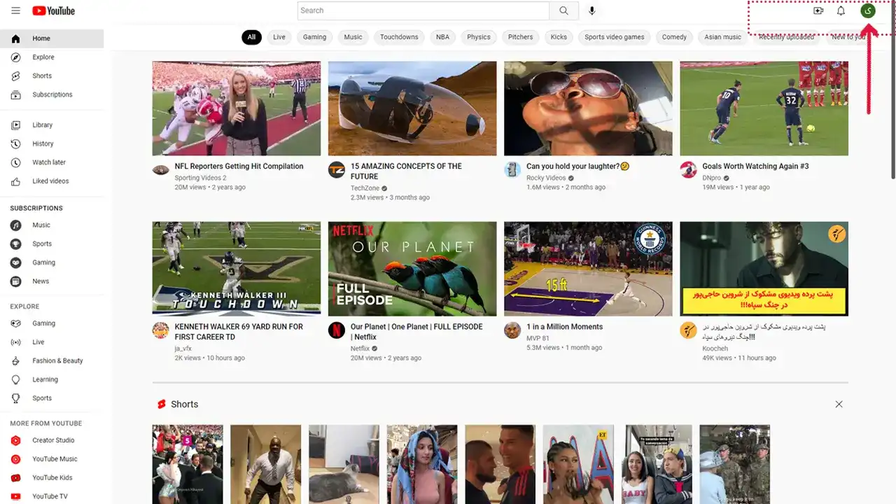 3. بعد از ورود به حساب کاربری خود، به صفحه اصلی یوتیوب بازگردید.