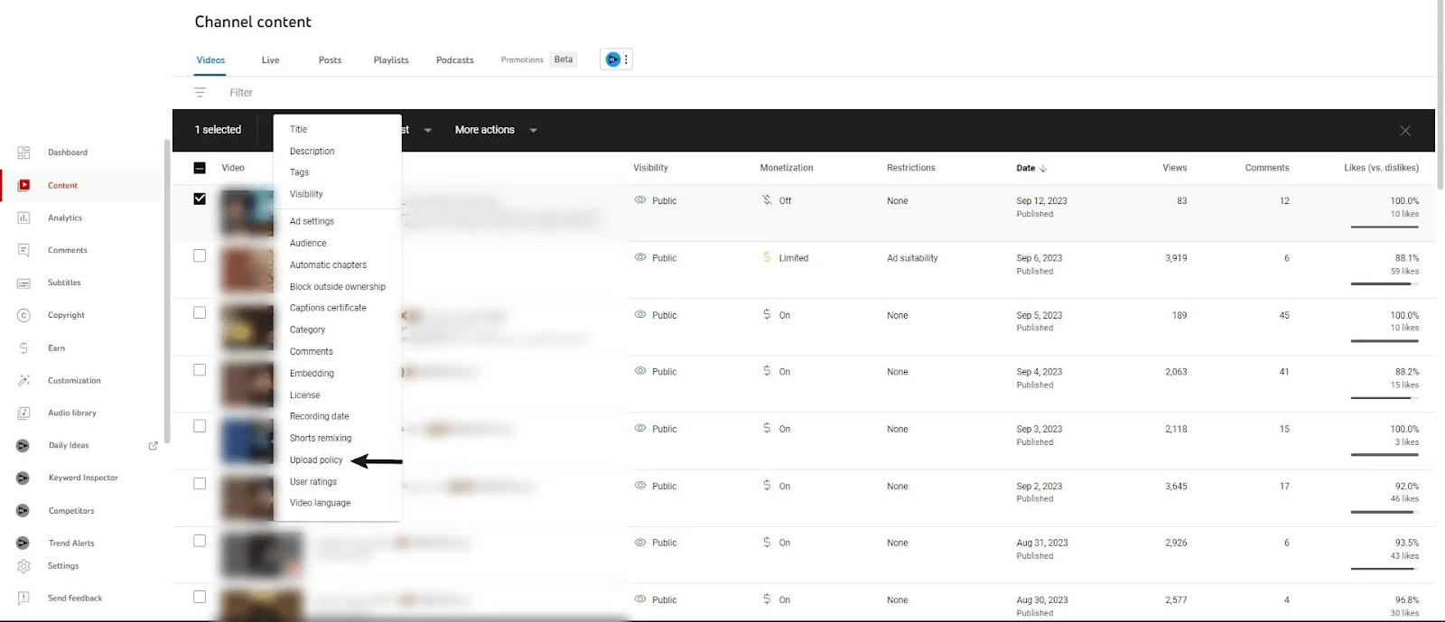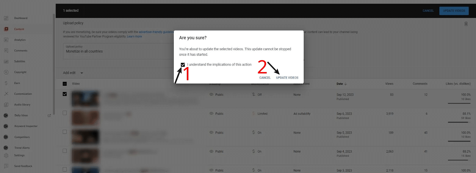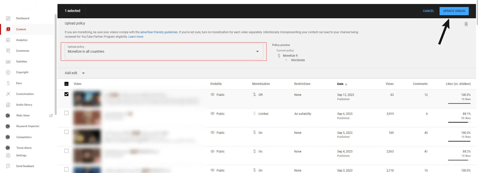 شاید برای شما هم اتفاق افتاده باشد که گاهی اوقات وارد یوتیوب استودیو خود شوید و بعد از آن وارد بخش content شوید و مشاهده کنید که درآمدزایی چند تا از ویدیو های شما off است و ندانید باید چه کاری را انجام دهید در این مقاله به شما آموزش می دهیم که چگونه درآمدزایی آن ویدیو ها را فعال کنید.- مرحله اول