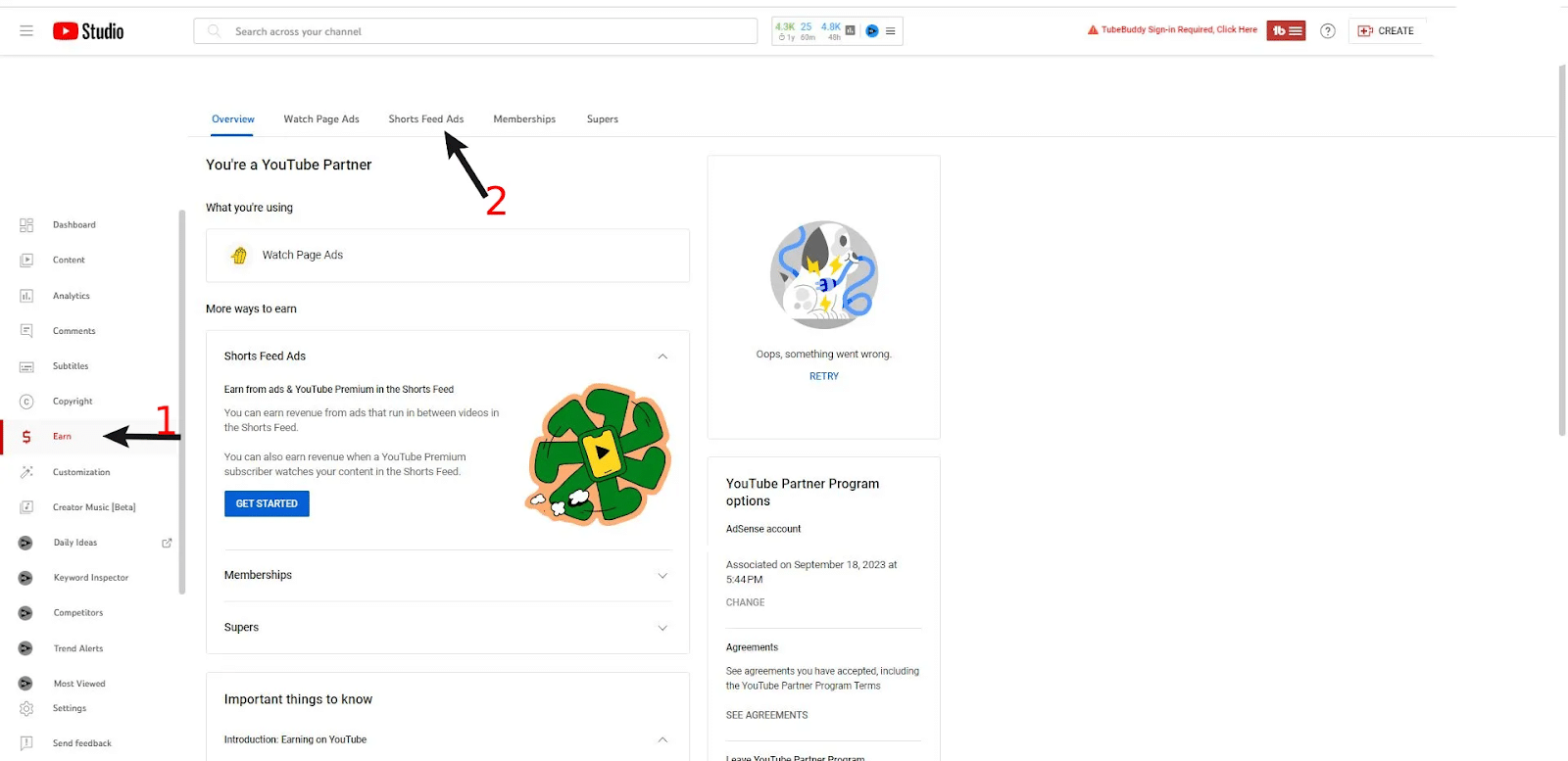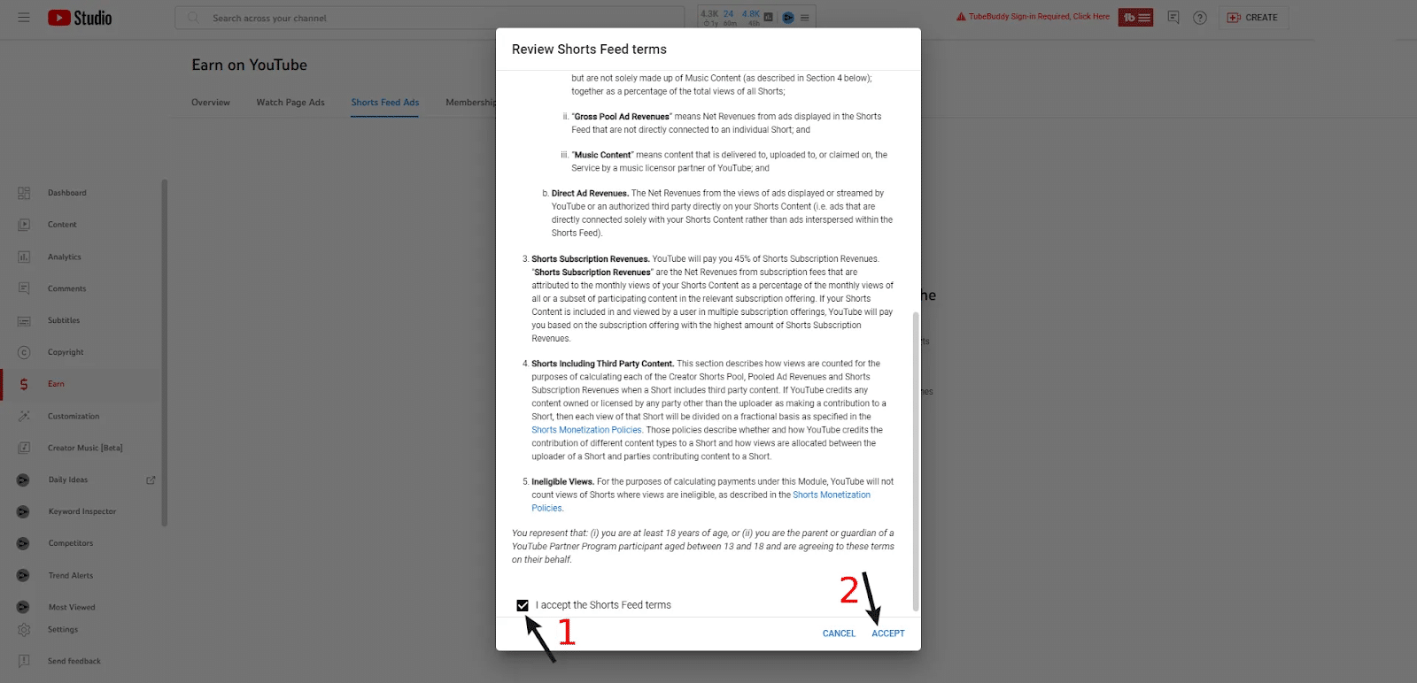 فعال کردن درآمد زایی ویدیو های شورت یا ویدیوهای لانگ تفاوتی باهم ندارند و روش ها مشابه هم هستند. در صورت فعال نبودن درآمد زایی کانال شما باید از روش زیر اقدام به فعال کردن آن کنید.- مرحله اول