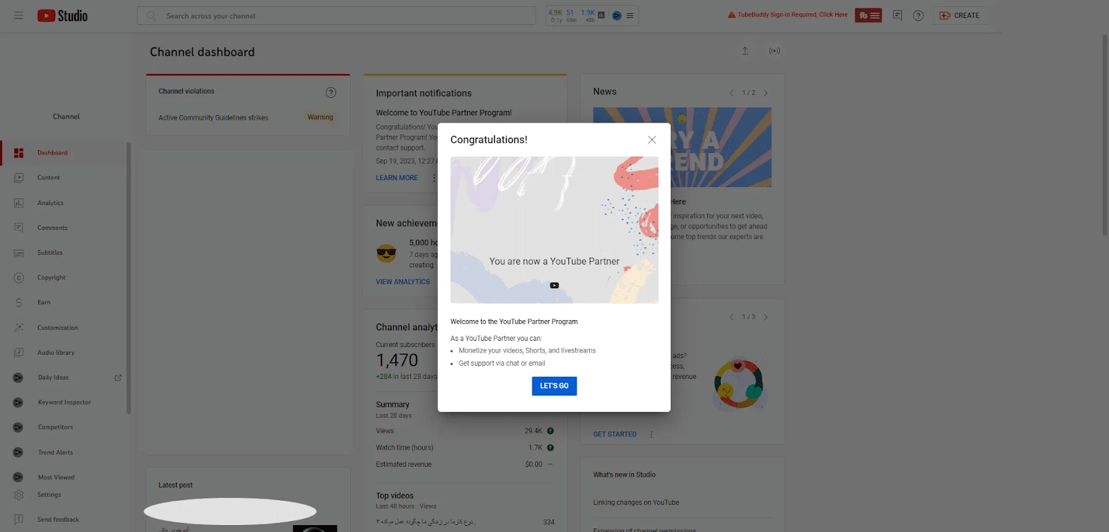 - پس از رسیدن به این شرایط، میتوانید از طریق YouTube Partner Program درآمدزایی را فعال کنید.