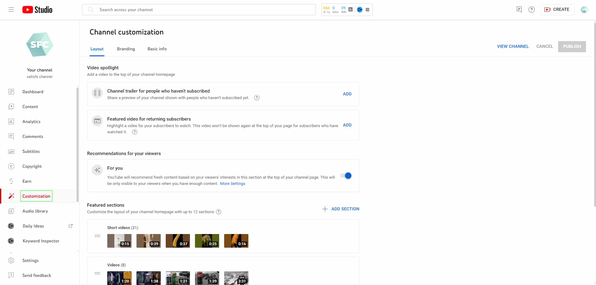 ابتدا صفحه سفارشی سازی یوتیوب را در یوتیوب استودیوی خود پیدا کنید. اینجاست که میتوانید طرحبندی، اطلاعات اولیه و نام تجاری کانال خود را تنظیم کنید. 1- ابتدا وارد صفحه اصلی کانال خود شوید.