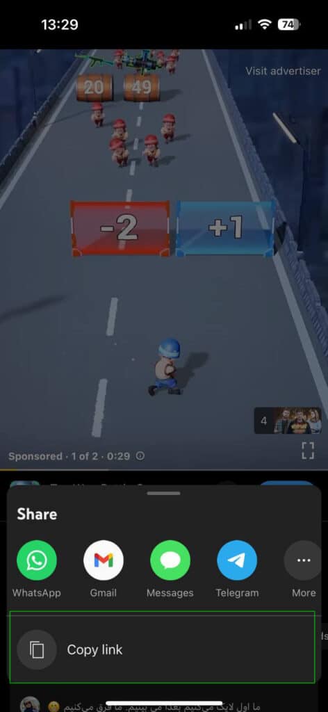 4.لینک آدرس نزدیک بالای صفحه است. بر روی Copy کلیک کنید و URL در کلیپ بورد گوشی ذخیره می شود. سپس می توانید URL را در هر کجا که نیاز دارید قرار دهید.