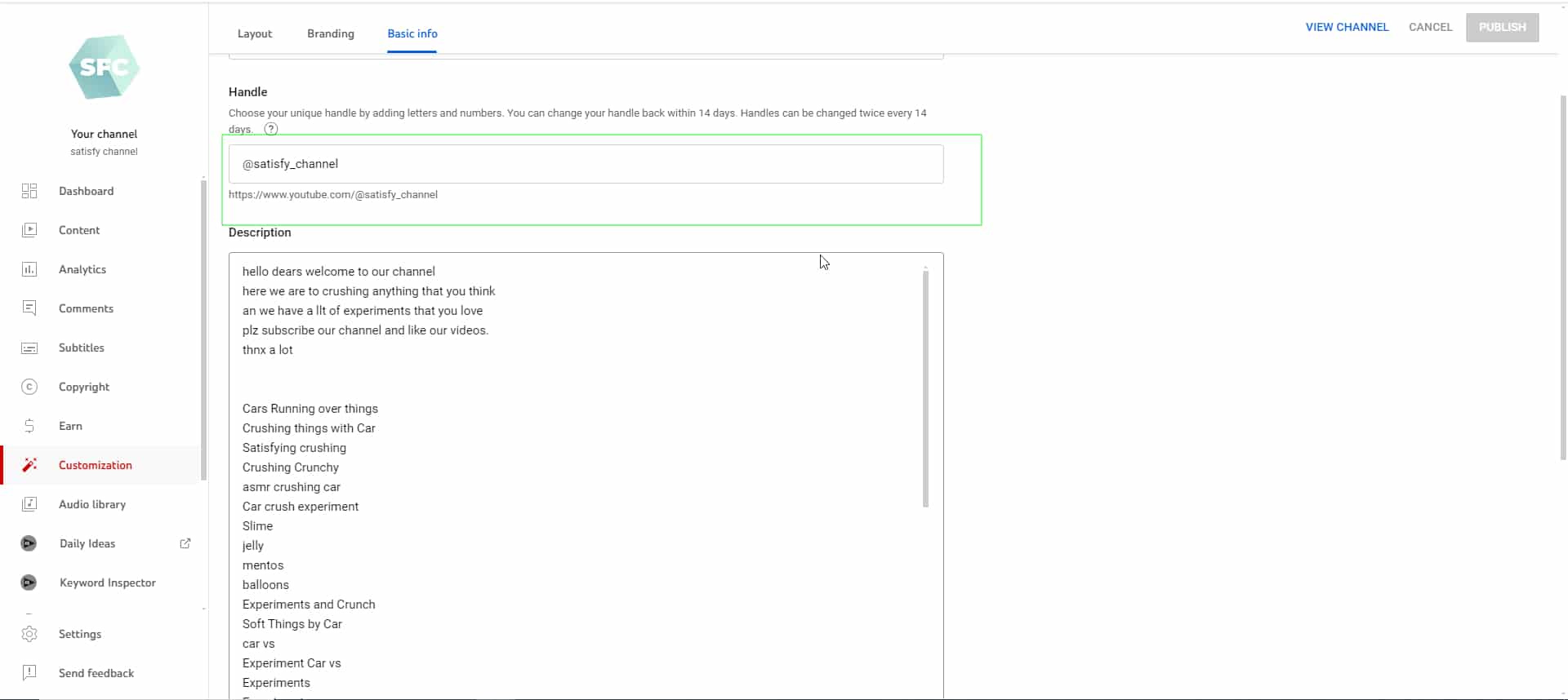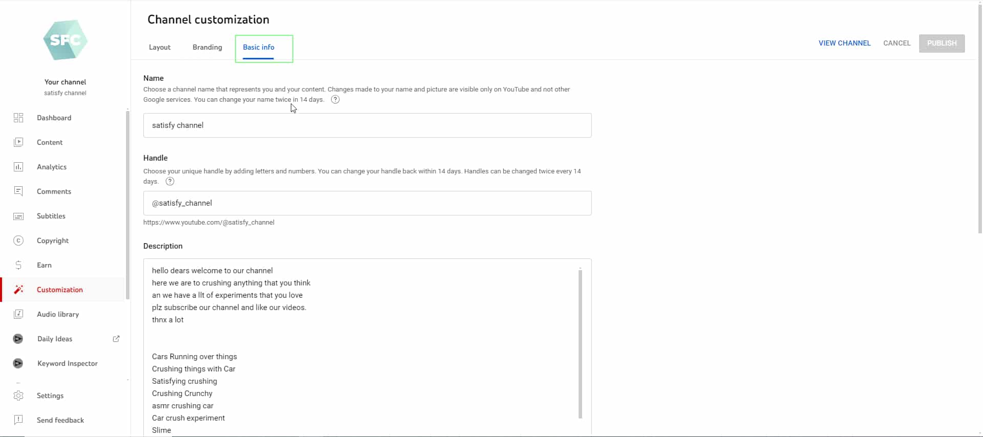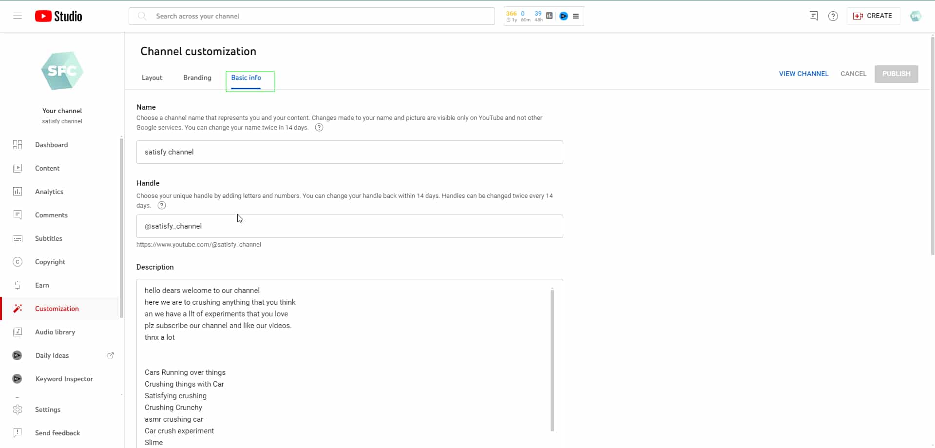 برای اینکه به url چنل یوتیوبمان دسترسی داشته باشیم باید وارد یوتیوب استودیو شویم و بعد از آن بر روی گزینه customization کلیک کنیم و به قسمت basic info برویم دقیقا زیر قسمت دیسکریپشن گزینه channel url قرار دارد که میتوانید آن را کپی کنید و داشته باشید.آموزش تصویری دسترسی به لینک یوتیوب: