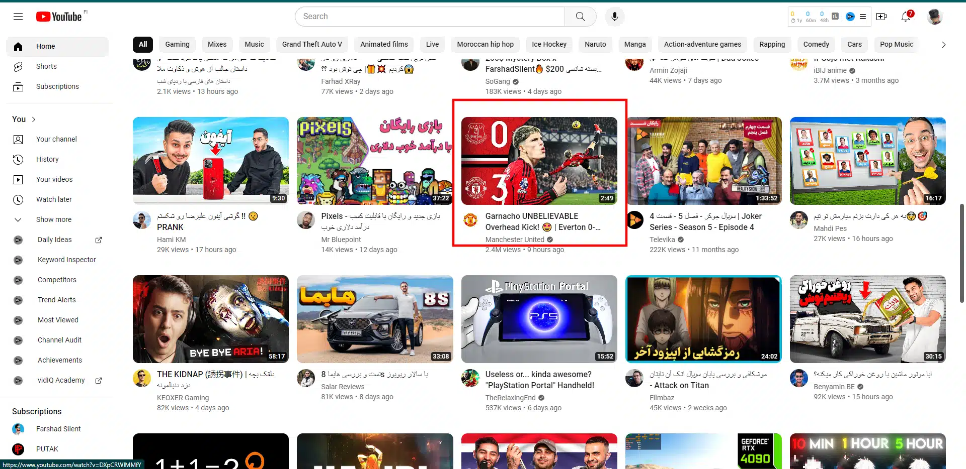 پس از باز کردن وبسایت یوتیوب، شما به صفحه اصلی یوتیوب هدایت خواهید شد. این صفحه ویدیوهای محبوب و پیشنهادی را نمایش میدهد.