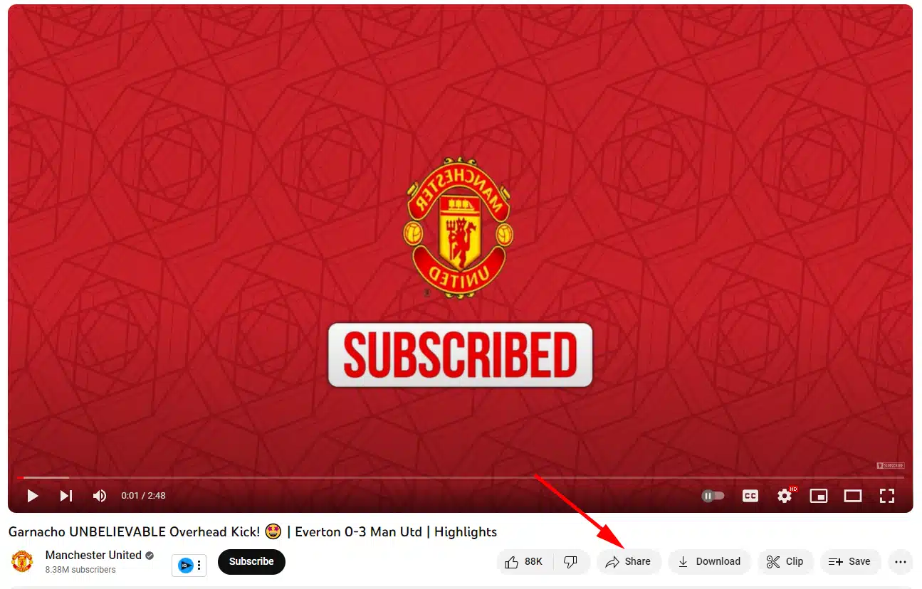 این دکمه معمولاً زیر ویدیو و در کنار دکمه "لایک" و "ذخیره" قرار دارد.