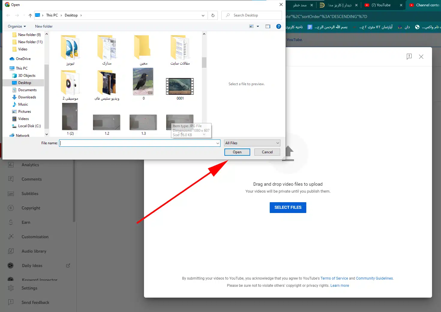 4- به پوشه ای که ویدیوی شما در آن قرار دارد و قرار است آپلود شود بروید و آن را انتخاب کنید و سپس یوتیوب شروع به آپلود ویدیو می کند