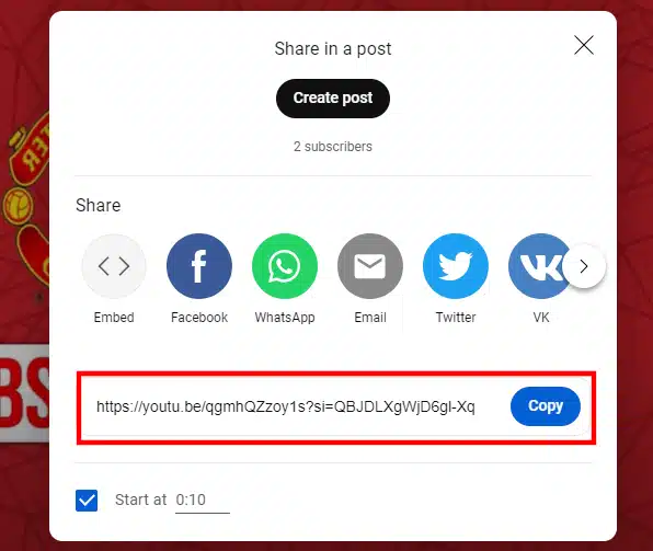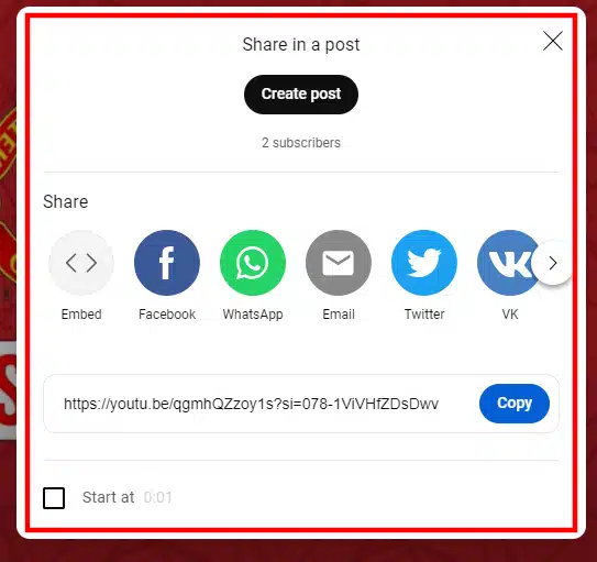 پس از کلیک بر روی دکمه "اشتراکگذاری"، شما به یک صفحه که گزینههای اشتراکگذاری را نشان میدهد، هدایت میشوید. اینجا شما میتوانید گزینههای مختلفی را انتخاب کنید، از جمله: - اشتراک گذاری در شبکههای اجتماعی مانند فیسبوک، توییتر، اینستاگرام و غیره. - ارسال لینک به دوستان یا ایمیل. - درج ویدیو در وبسایت یا وبلاگ شما. - دریافت کد تعبیه (Embed) برای جایگذاری ویدیو در وبسایت یا بلاگ. - ایجاد لینک قصد بازدید محدود (Unlisted link) یا لینک خصوصی (Private link). - اشتراکگذاری تصویر کاور ویدیو.